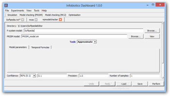 Infobiotics Dashboard enables you to develop multi-cellular modes and comes with a stochastic simulator, model analysis tools and optimization capabilities. It features result plotting capabilities abd model checking tools.