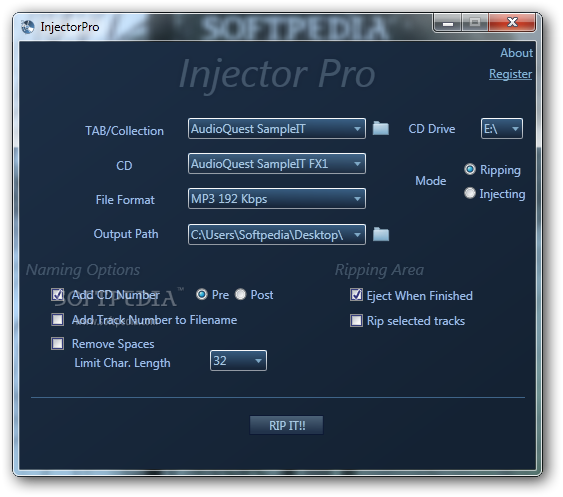 Injector Pro is a compact software application whose purpose is to help you rip tracks from audio SFX CDs and insert additional information (track naming options) in the audio files previously ripped from a disc.