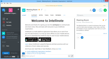 Intellinote requires that you log in with the account you previously created. With each new account the program prompts you to generate a new organization, but you may also connect to an existing one. A Meeting Room is assigned a specific URL, which you can send to third party users, such as project managers, team leaders, customers and other higher-ups so that they can follow your progress.