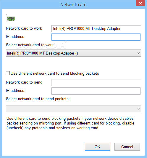 The program can detect the available network adapters during its installation and allows you to select the most suitable variant. Internet Administrator can monitor the traffic passing through the indicated adapter, through a single network segment.