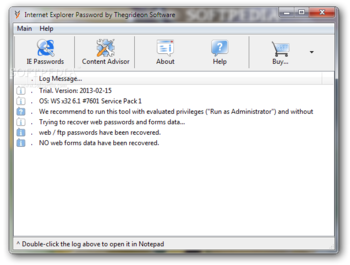 Internet Explorer Password is a demo software by Thegrideon Software and works on Windows 10, Windows 8.1, Windows 8, Windows 7, Windows 2012.