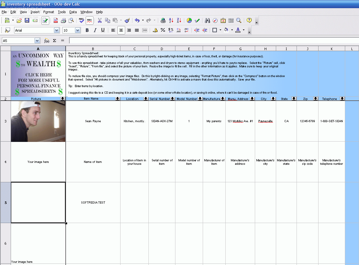 Inventory Spreadsheet is a free software by An Uncommon Way to Wealth and works on Windows 10, Windows 8.1, Windows 8, Windows 7, Windows XP, Windows 2000, Windows 2003, Windows 2008, Windows 98, Windows ME, Windows NT, Windows Vista, Windows 2012.