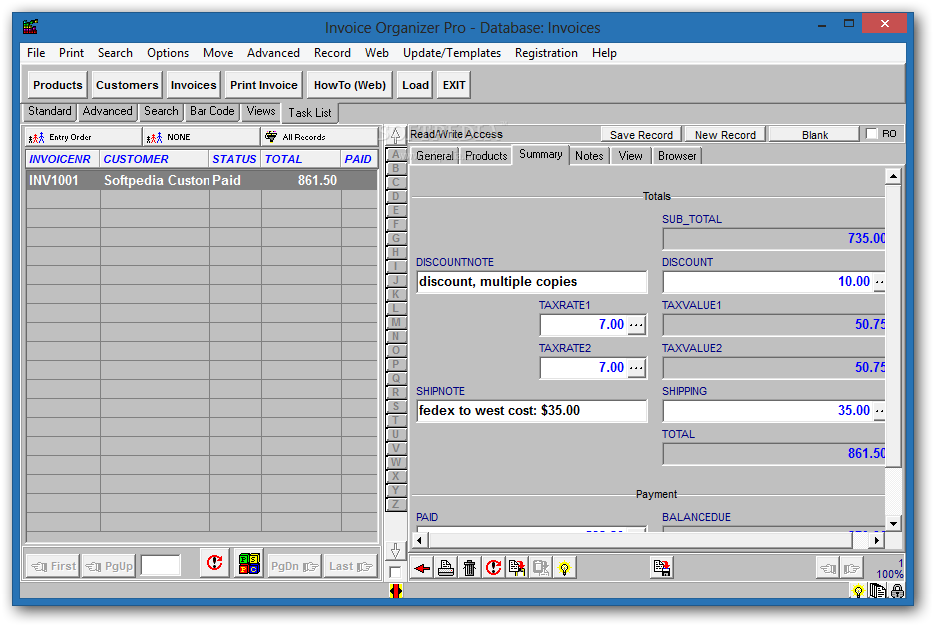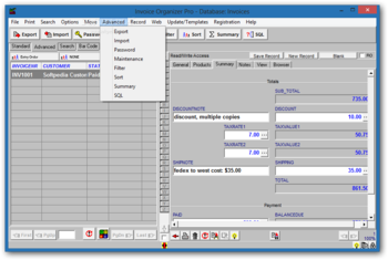 The program organizes and displays the data efficiently, so that the invoice information is readily accessible in a variety of ways. You can arrange invoice information any way you want to view it.
