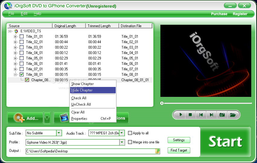 iOrgSoft DVD to GPhone converter enables you to convert DVD to MPEG 4, AVC (H.264) MPEG 1, MPEG 2, WMV, AVI, Divx, and Xvid video format.
