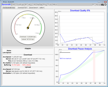 IPJudo includes a graphical traceroute that displays node locations on a world map as well as a speed test that downloads files from various (public) locations and analyzes your Internet connection quality.