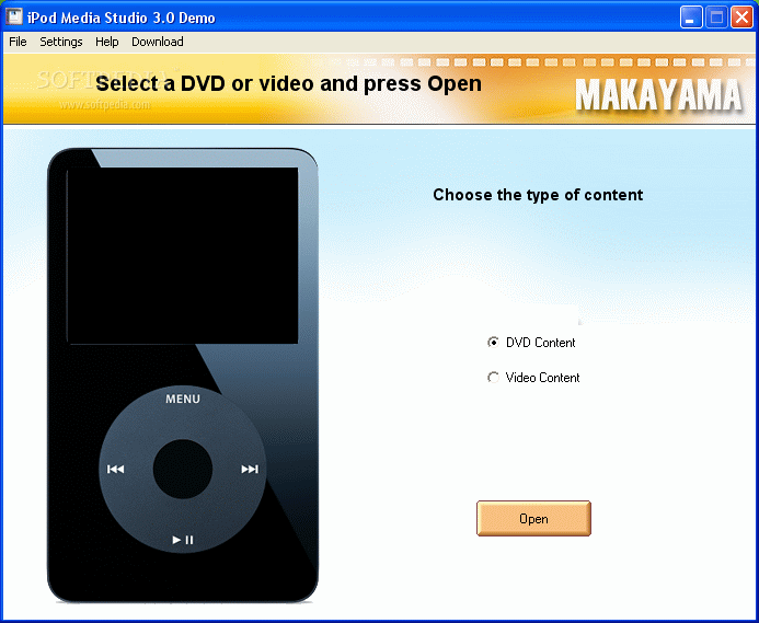 iPod Media Studio installs an encoding package on a Windows XP computer, users pick any video file from their harddrive, CD or DVD and with only three clicks, the software turns it into a compressed movie file, which will play on the MPEG4-mediaplayer on the iPod.