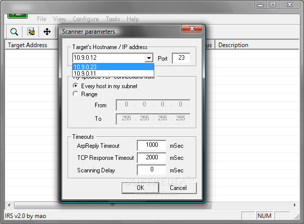IRS combines "ARP Poisoning" and "Half-Scan" techniques and tries totally spoofed TCP connections to the selected port of the target.