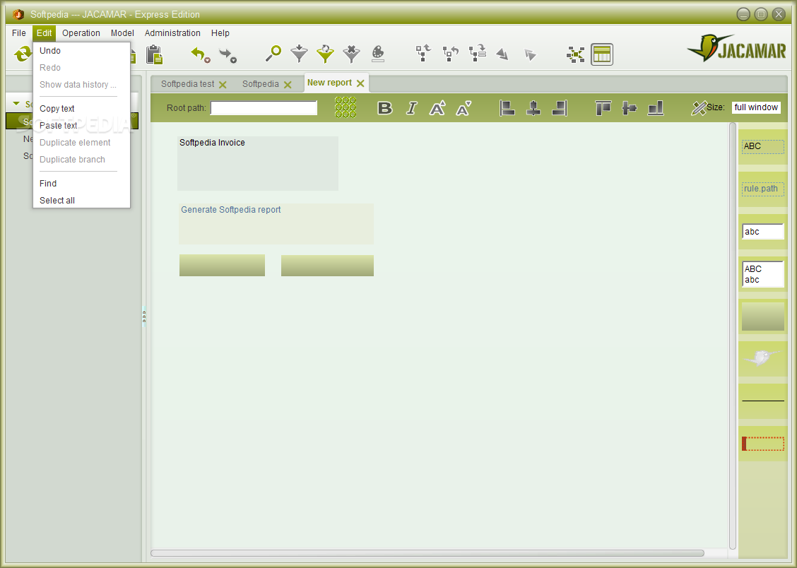 You can sort the entries, modify certain details, generate reports and create documents, such as invoices - JACAMAR allows you to manually design the forms.
