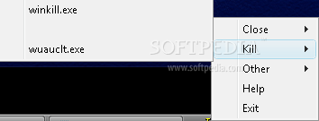 Tasks and windows to kill can also be killed from a shortcut menu,