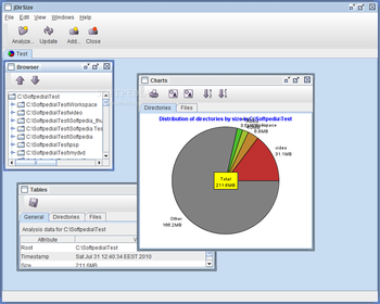 To perform its analysis, jDirSize will access and read the contents of a specified directory on your file system, however it will never modify your data in any way!System requirementsJava 1.5 or higher