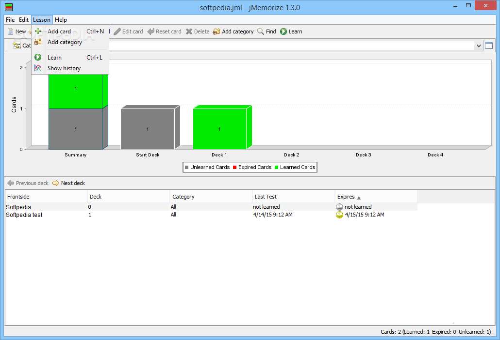 jMemorize makes memorizing more efficient and more fun. It boosts your whole learning experience and features categories, statistics with a visually appealing and intuitive interface.System requirementsJava Runtime Environment