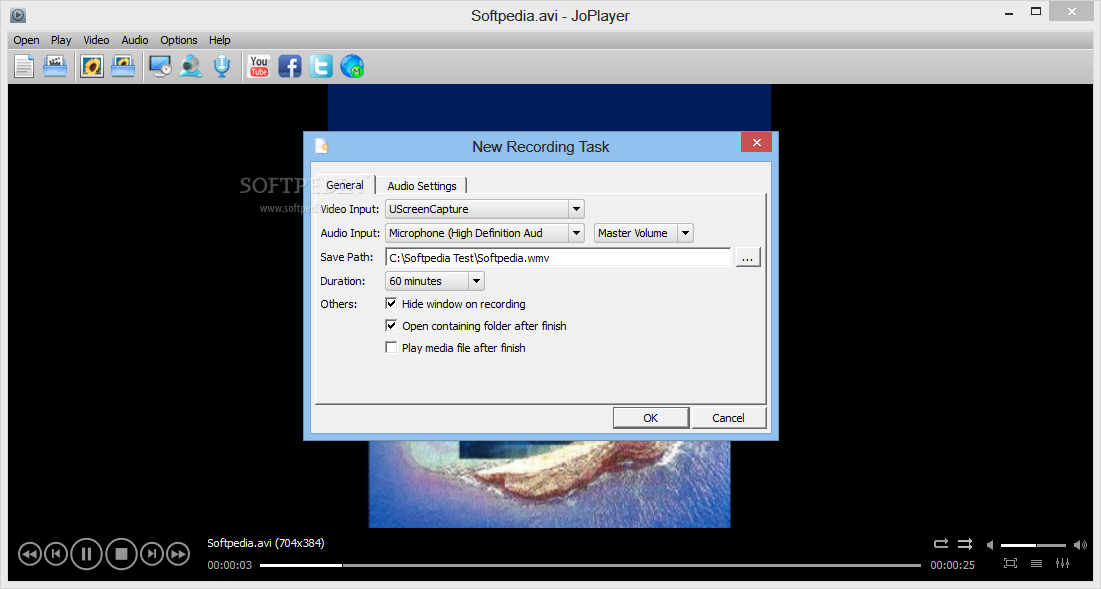 JoPlayer is equipped with a powerful set of video and audio codecs and is capable of playing most of video and audio files. It allows you to take snapshots of playing video, it also allows you to create your own tutorial videos for playback and share. You can record audio into MP3 for playback.