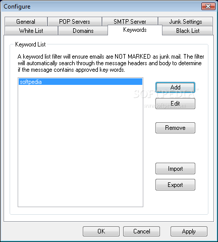 Through the easy-to-use configuration and main screen, you will quickly and efficiently manage potential junk emails, your POP3 and SMTP accounts, and email filter rules.