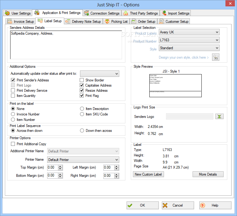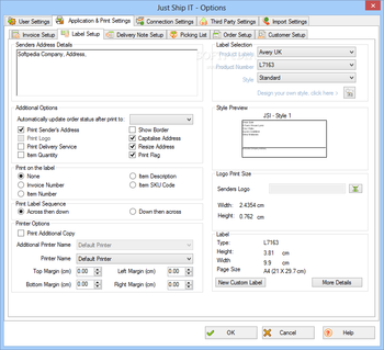 Multiple Labels, Despatch notes and Invoices are generated from within Just Ship IT at a click of a button and can be fully customized to the users requirements, once printed the items can be archived so that the data is retained indefinitely for reporting and account management purposes, yet can be hidden from the every day work flow to ease the use of the application.