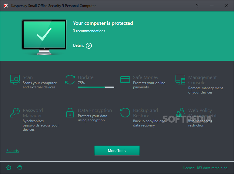 By combining real-time, cloud-assisted technologies plus powerful anti-malware technologies that run on your devices, Kaspersky Small Office Security defends your business against the very latest malware threats.