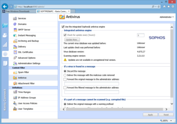 Use your existing anti-virus system with Kerio Connect easily through Kerio’s built-in anti-virus plug-ins.