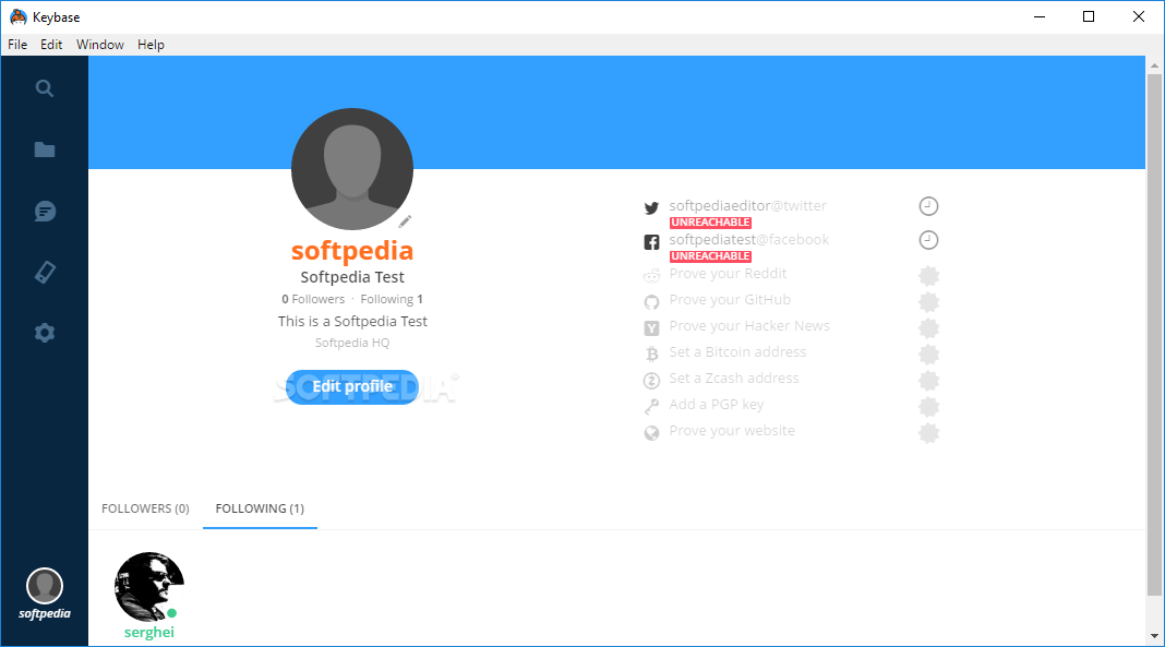 Keybase is a free software by Keybase, Inc. and works on Windows 10, Windows 8.1, Windows 8, Windows 7, Windows 2012.