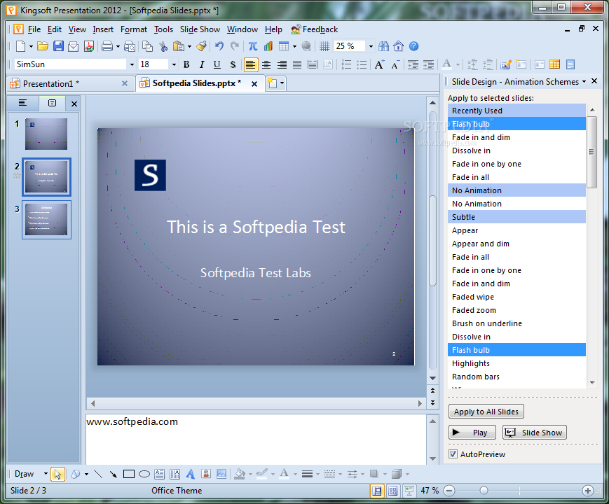 Kingsoft Presentation is a free software by Kingsoft Corporation and works on Windows 10, Windows 8.1, Windows 8, Windows 7, Windows XP, Windows 2000, Windows 2003, Windows 2008, Windows Vista, Windows 2012.