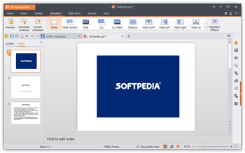 Offers a large number of slide effects to help you to create wonderful slides, such as flash, background sound, different animation effects, and more.