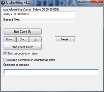 Kitchen Timer offers you the possibility to set the countdown timer in days, hours, minutes, seconds, and milliseconds. What’s more, you can make the application either count up or down, start, stop, pause, or resume the timer, as well as reset the information with a single click.