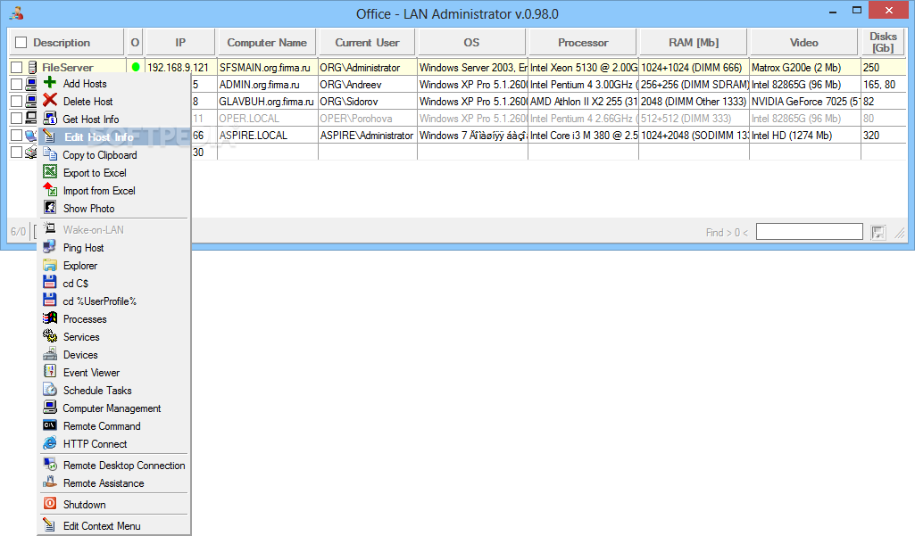 LAN Administrator is a software tool developed specifically to aid individuals in gathering information regarding apps running on selected hosts in your LAN.