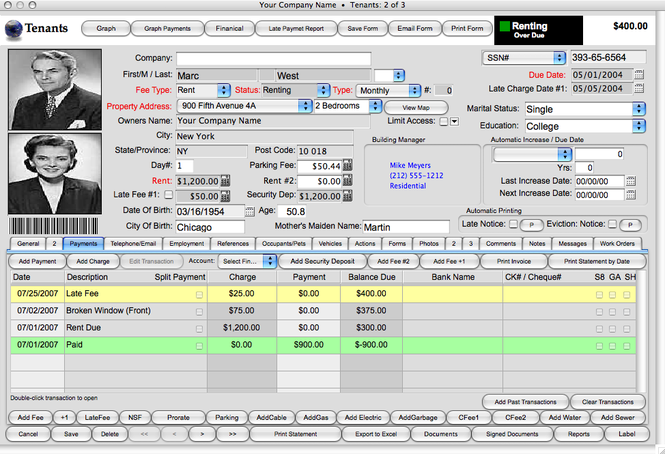 The Landlord Report provides a full range of property management functionality. It can handle an unlimited number of properties including single family homes and multiple dwellings.