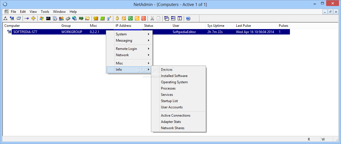 The program’s toolbar provides you with quick access to the most relevant functions, enabling you to discover a wide array of information about the targeted PC with a simple button push.