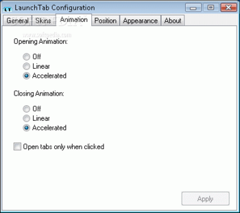 Most configuration options are related to visuals. On the one hand, these can simply mean whether tabs to stay on top of everything else, but it can get disturbing to accidentally pop up a tab when hovering the cursor over it. However, there is an option which allows you to only open tabs through mouse click to bypass this issue.