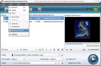 You can download Leawo Free iPod Converter which is 28.46 MB in size and belongs to the software category Video. Leawo Free iPod Converter was released on 2011-11-12 and last updated on our database on 2017-03-03 and is currently at version 5.