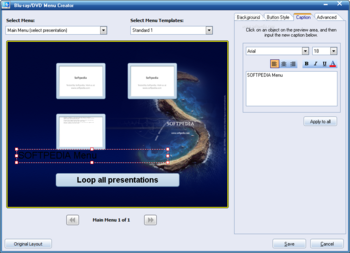 The application can create standard DVDs or Blu-Ray discs, enabling you to customize the aspect ratio, the encode and the display size. Furthermore, you can create a menu for the resulting DVD video, either by using one of the pre-defined templates or creating a new menu layout with the built-in menu creator.