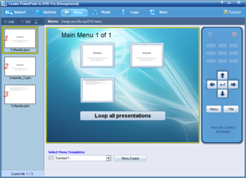Thanks to its intuitive interface and straightforward options, working with Leawo PowerPoint to DVD Pro shouldn't pose any problem to users. You start by importing the desired input files, in PPT, PPTX, PPTM, PPS, PPSX, POT, POTX or POTM format.