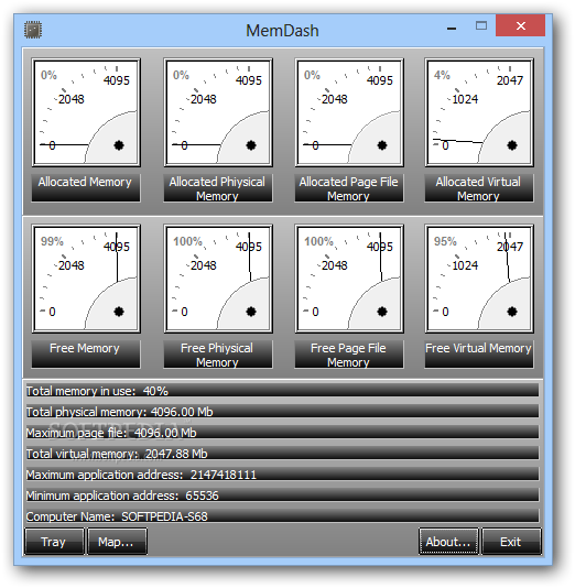 MemDash is a simple utility that displays a graphical representation of various aspects of memory (e.g. allocated, free, virtual, and allocated page file memory), while Watch 4 Size comes in handy in case you want to receive notifications when the size of a target folder reaches a predefined value. Last but not least, Watch 4 Start lets you monitor and detect the applications that run at Windows startup.