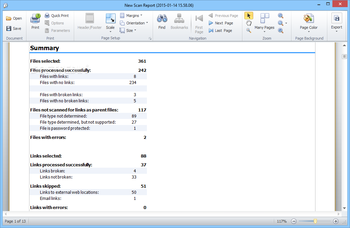 Link Reporter features the Regular Report function which can detect the number of files that contain links and analyze how many of them are broken. The results can be displayed in a detailed sheet that lists all the parent and child files, indicating the link between them.