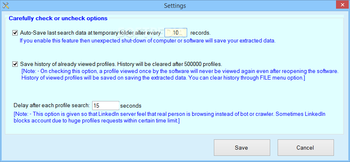 LinkedIn Company Extractor saves the search results automatically after a certain number of records have been gathered. This feature can help prevent data loss if your computer shuts down unexpectedly.