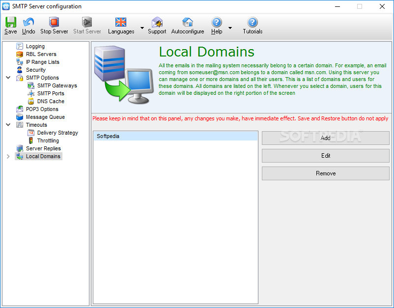 Local SMTP Server Pro is an advanced yet highly novice-accessible piece of software that allows you to eliminate the restrictions set by your Internet provider for sending emails by allowing your to effortlessly create your own SMTP, POP3, and IMAP4 servers and, of course, to bypassing the official ISP mail server.