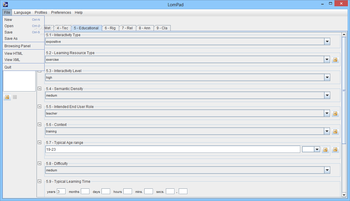 LomPad is an easy to use metatagging tool for learning object designed to support the IEEE-lom spec and SCORM, CANCORE and Normetic profiles.System requirementsJava