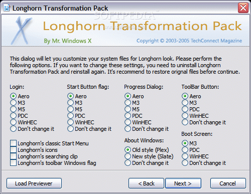 Longhorn Transformation Pack is meant to allow Windows XP and Server 2003 users to revamp the look of their computers, and give it a fresh makeover by making them resemble Vista.
