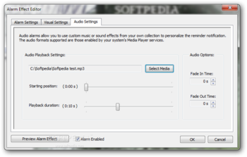 Look Hear Alarm includes fade in and fade out effects for the displayed pictures as well as for the selected audio files.Limitations in the unregistered versionCan create only 2 alarms in unregistered mode