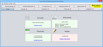 Lutin Invoice Monitoring and Accounting is a free software by CodeLutin and works on Windows 10, Windows 8.1, Windows 8, Windows 7, Windows 2008, Windows Vista, Windows 2012.