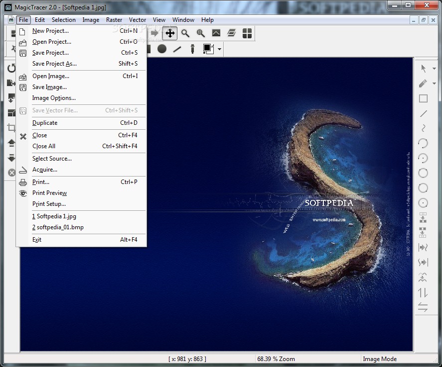 These tools allow shapes to be added to project files as pixels or vectors. Vector results can be exported to any CAD (i.e. AutoCAD) or vector editing program (i.e. Illustrator) through DXF. MagicTracer also allows exporting vectors to DC2, XYZ, and WMF. Import and export formats for raster images include all common formats as well as some less common ones.System requirements10.4 MB of Hard Drive space