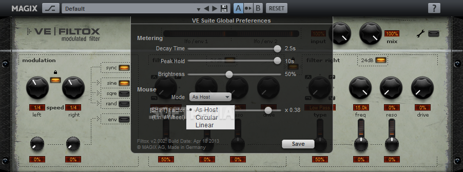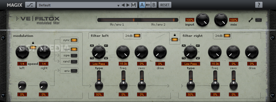 The other two plug-ins, namely Ecox and Filtox, offer people the ability to add reverberation effects and audio filters respectively. Featuring the same layout of knobs and buttons for controlling modulation, delay or left/right filters respectively, they allow users to emulate realistic tape echo sounds and control the frequency response of a modulation source.