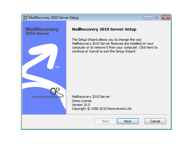 MailRecovery Server suite combines data recovery programs for email applications into convenient setup package. With this suite you are able to recover corrupted email correspondance, contacts, calendar items etc from both client files (PST, OST, DBX) and server databases (EDB,STM). MailRecovery Server suite provides data recovery solutions for Microsoft products, such as Outlook Express, Outlook and Exchange (both for client and for server data). MailRecovery Server does support Office 2010 Outlook and Exchange Server 2010. MailRecovery Server is enhanced with 1-Year UpgradeSupport plan.