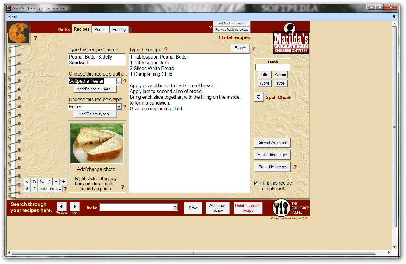 Matilda's Fantastic Cookbook Software is a demo software by The Cookbook People and works on Windows 10, Windows 8.1, Windows 8, Windows 7, Windows XP, Windows 2000, Windows 2003, Windows 2008, Windows Vista, Windows 2012.