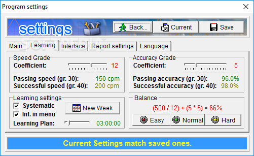 6 different typing modes, visualized statistics, daily and weekly reports, advanced recommendations system, learning time control system, built-in exercise library, personalized exercises and automatic suggestion of best typing mode