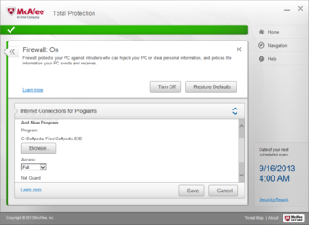 You can download McAfee Total Protection which is 5.13 MB in size and belongs to the software category Security Related. McAfee Total Protection was released on 2013-09-09 and last updated on our database on 2017-03-29 and is currently at version 2014.