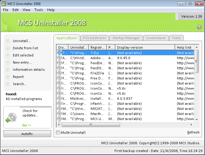 You can download MCS Uninstaller 2008 which is 3.11 MB in size and belongs to the software category System. MCS Uninstaller 2008 was released on 2008-10-29 and last updated on our database on 2017-04-20 and is currently at version 1.3.