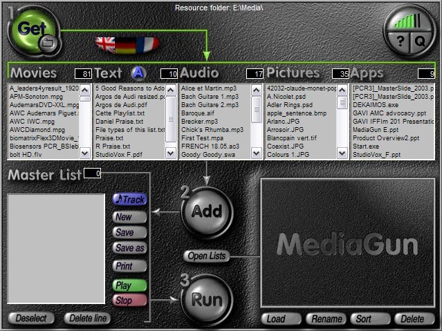 Your multimedia files in one media player without conversion. Assemble, Play and Distribute 50 file formats in few seconds. With MediaGun, the professional multimedia player (Video, Flash, PowerPoint, PDF, DVD, Images, Audio), you don't need a file format converter. It simply plays about 50 file formats full screen in a totally seamless way. Applications: What is MediaGun used for?