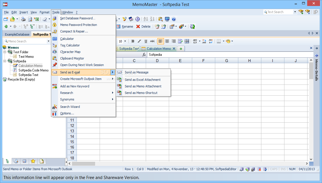 You can download MemoMaster which is 20.93 MB in size and belongs to the software category Other Office Tools. MemoMaster was released on 2013-11-10 and last updated on our database on 2017-03-11 and is currently at version 4.5.