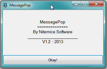 MessagePop is a free software by Nitemice Software and works on Windows 10, Windows 8.1, Windows 8, Windows 7, Windows 2008, Windows Vista, Windows 2012.