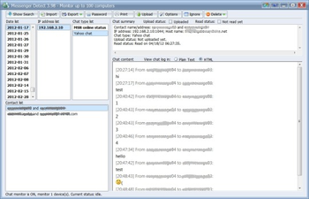 Messenger Detect is a next generation of chat monitor. Monitor and record all popular Instant Messenger chat or web chat on your local network automatically and secretly. Do not need to install any client software on the target computers (if your network device support port mirroring feature or you have a HUB on your LAN). Do not need to open Messenger Detect and keep it running to monitor chat, the background service will auto start after install. And it supports upload chat log via FTP and email now.